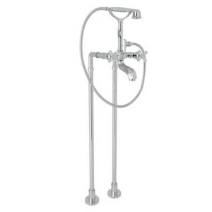 New 🥰 ROHL® Italian Country Bath Floor Mount Tub Filler with Metal Triple Cross Handle and Hand Shower in Polished Chrome 🔥