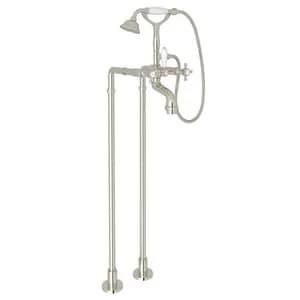 Cheapest 🔔 ROHL® Palladian® Floor Mount Tub Filler with Metal Triple Cross Handle and Hand Shower in Polished Nickel 🧨
