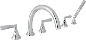 Brand new 🥰 ROHL® Perrin & Rowe® Edwardian 4 gpm 5 Hole Deck Mount Roman Tub Faucet with Triple Lever Handle in Polished Chrome 🎁