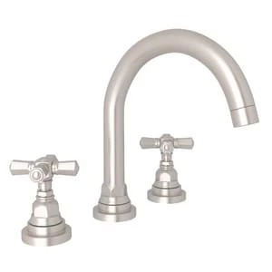 Deals ❤️ ROHL® San Giovanni Deck Mount Widespread Bathroom Sink Faucet with Double Cross Handle in Satin Nickel 🛒