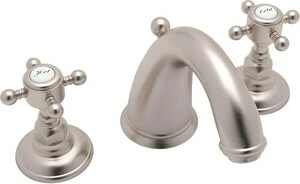 Discount ✔️ ROHL® San Julio® Deckmount Widespread Bathroom Sink Faucet with Double Crystal Cross Handle in Satin Nickel 🤩